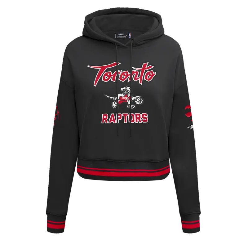 NBA TORONTO RAPTORS CLASSIC WOMEN’S FLEECE CROPPED PULLOVER HOODIE (BLACK)